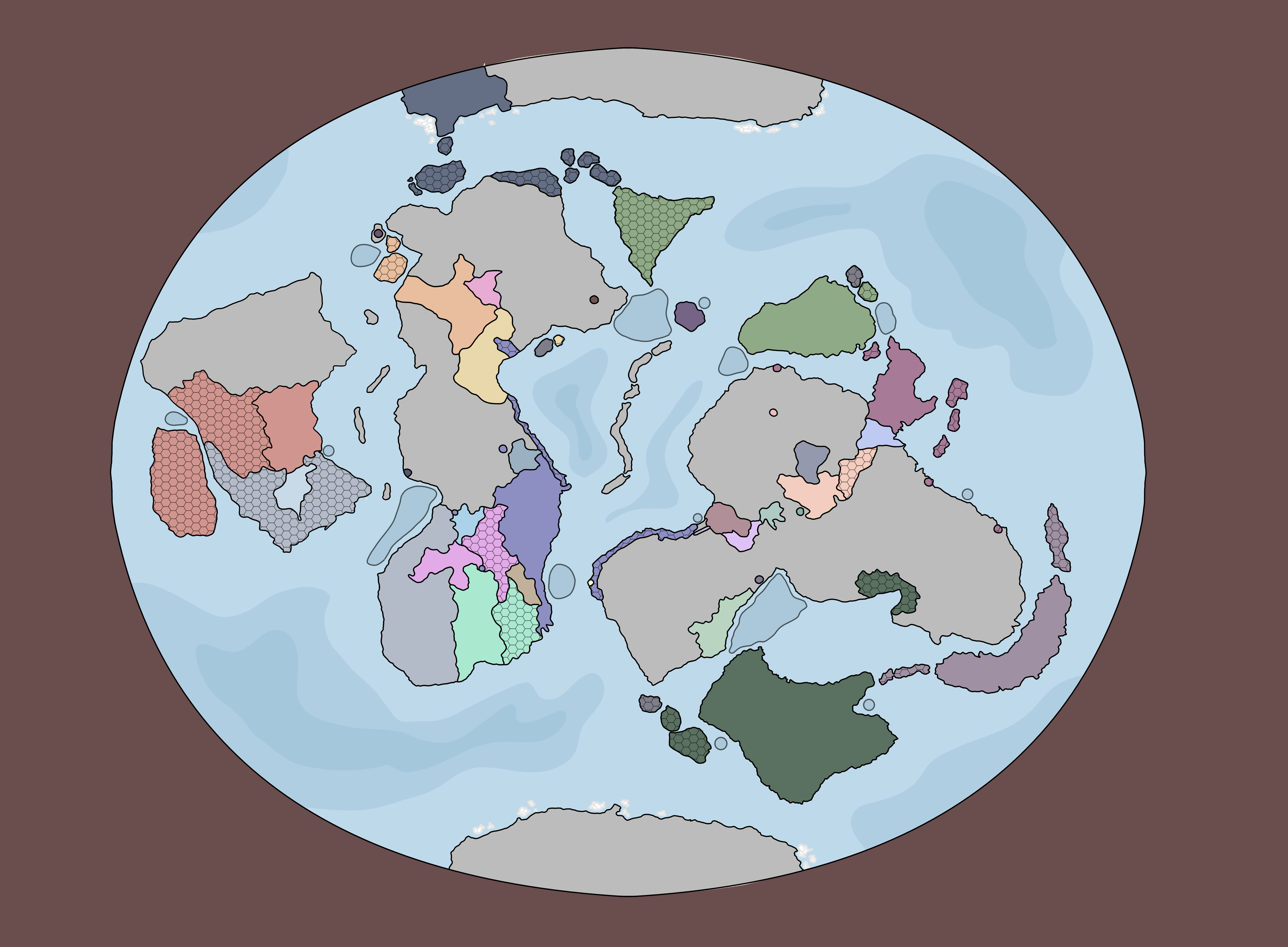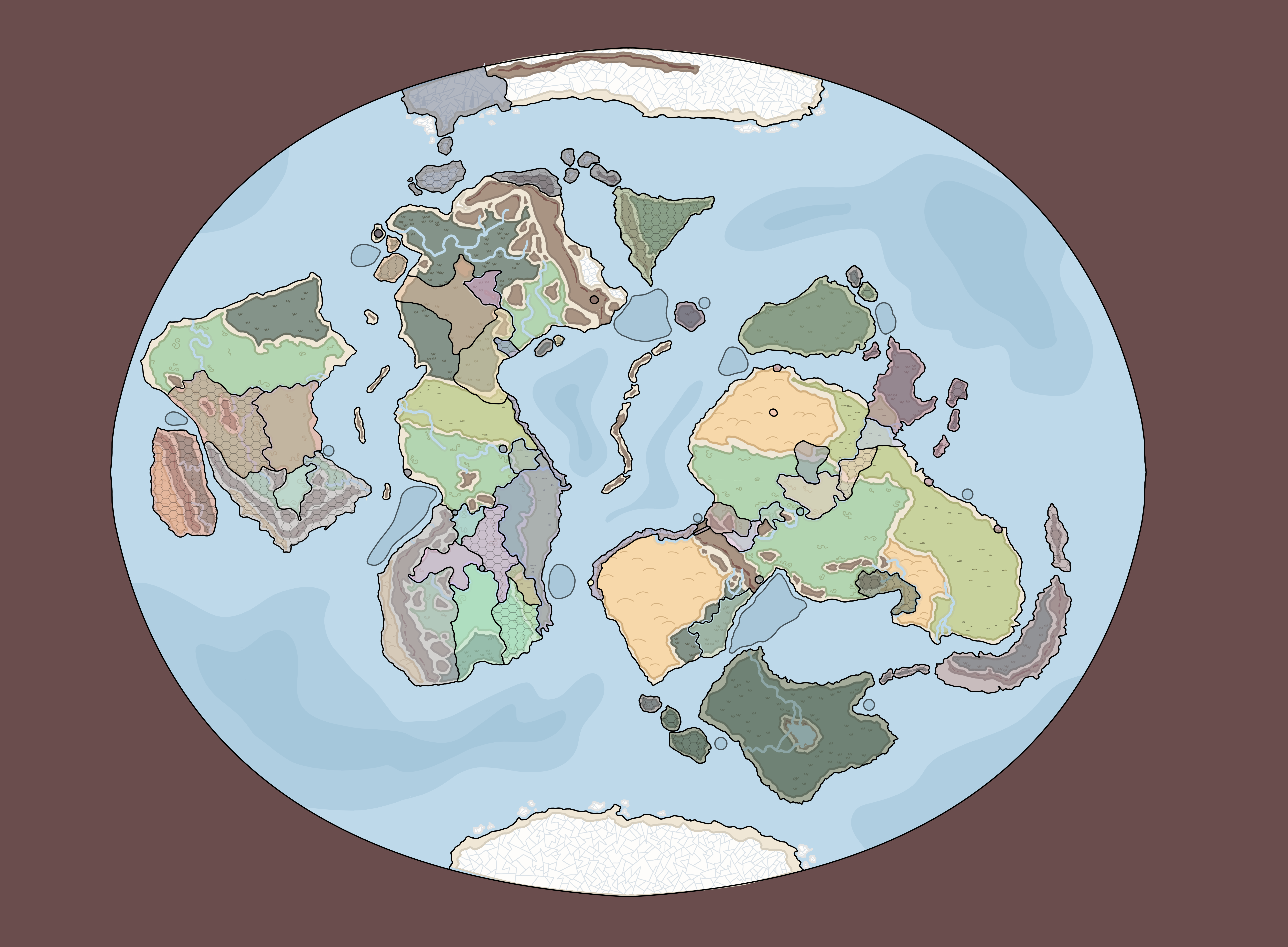 Neben den verschieden großen Ländern ist vieles von Eladros Festland noch “unerforscht” - aber trotzdem belebt. Von wilden Tieren, über organisierte friedliche Völkern bis zu brutalen Gruppen gibt es in der Wildnis alles. Die Weltkarten: